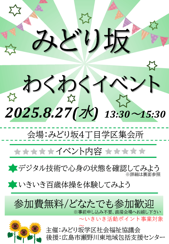 いきいきセミナーに先駆けて、「みどり坂わくわくイベント」を開催します。